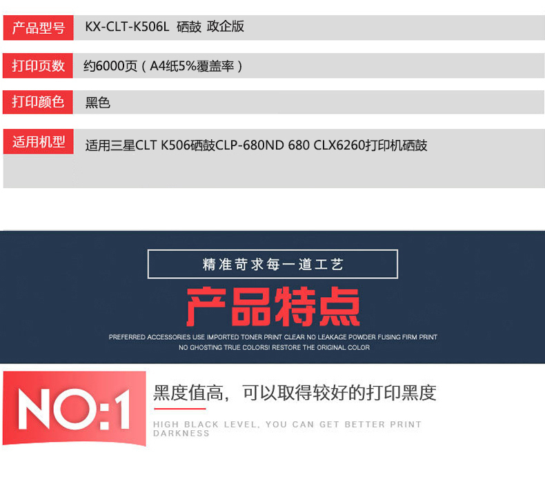 凱欣KX-CLT-K506L 適用三星CLT K506硒鼓CLP-680ND 680 CLX6260打印機(jī)硒鼓 全國統(tǒng)一價(jià):275元