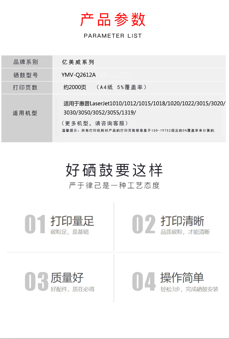 億美威 YMV-Q2612A 惠普 LaserJet1010/1012/1015/1018/1020 全國(guó)統(tǒng)一價(jià):178元