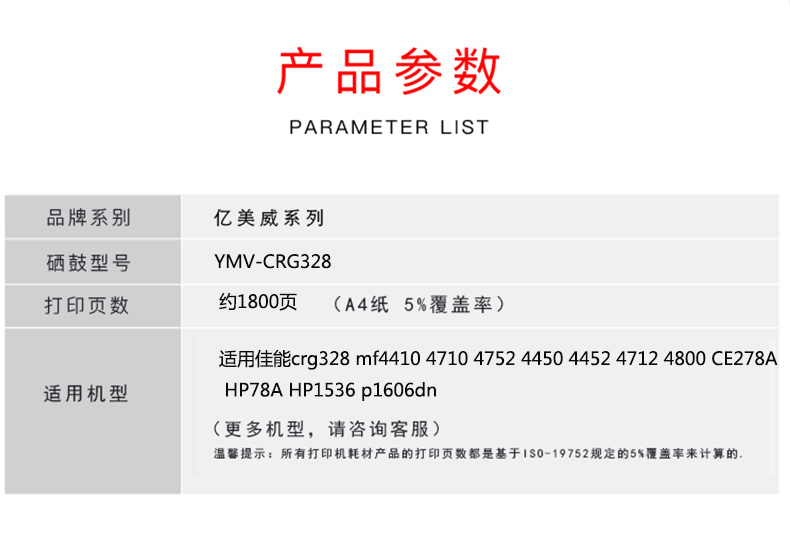 億美威 YMV-CRG328 適用佳能MF4410/4412/4420/4452/4572/4710 全國統(tǒng)一價:178元