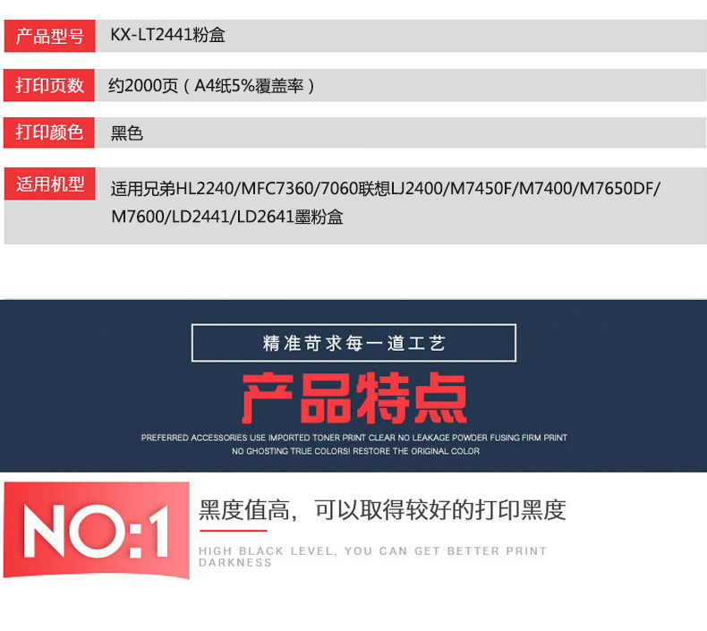 凱欣標準版 KX-LT2441粉盒 適用兄弟HL2240/MFC7360/7060聯(lián)想LJ2400/M7450F/ M7400/M7650DF/M7600全國統(tǒng)一價:136元